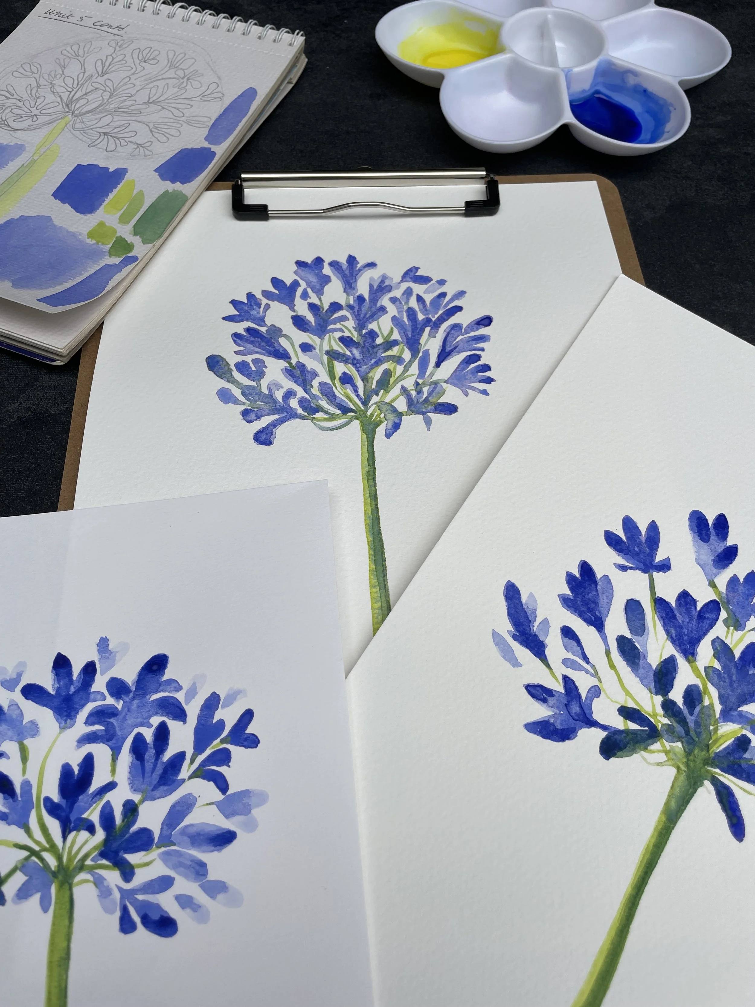 You’ll learn how to paint the elegant, trumpet-shaped blooms of the agapanthus. We’ll focus on capturing their graceful clusters and vibrant blues and purples with smooth brushwork and subtle colour layering.
