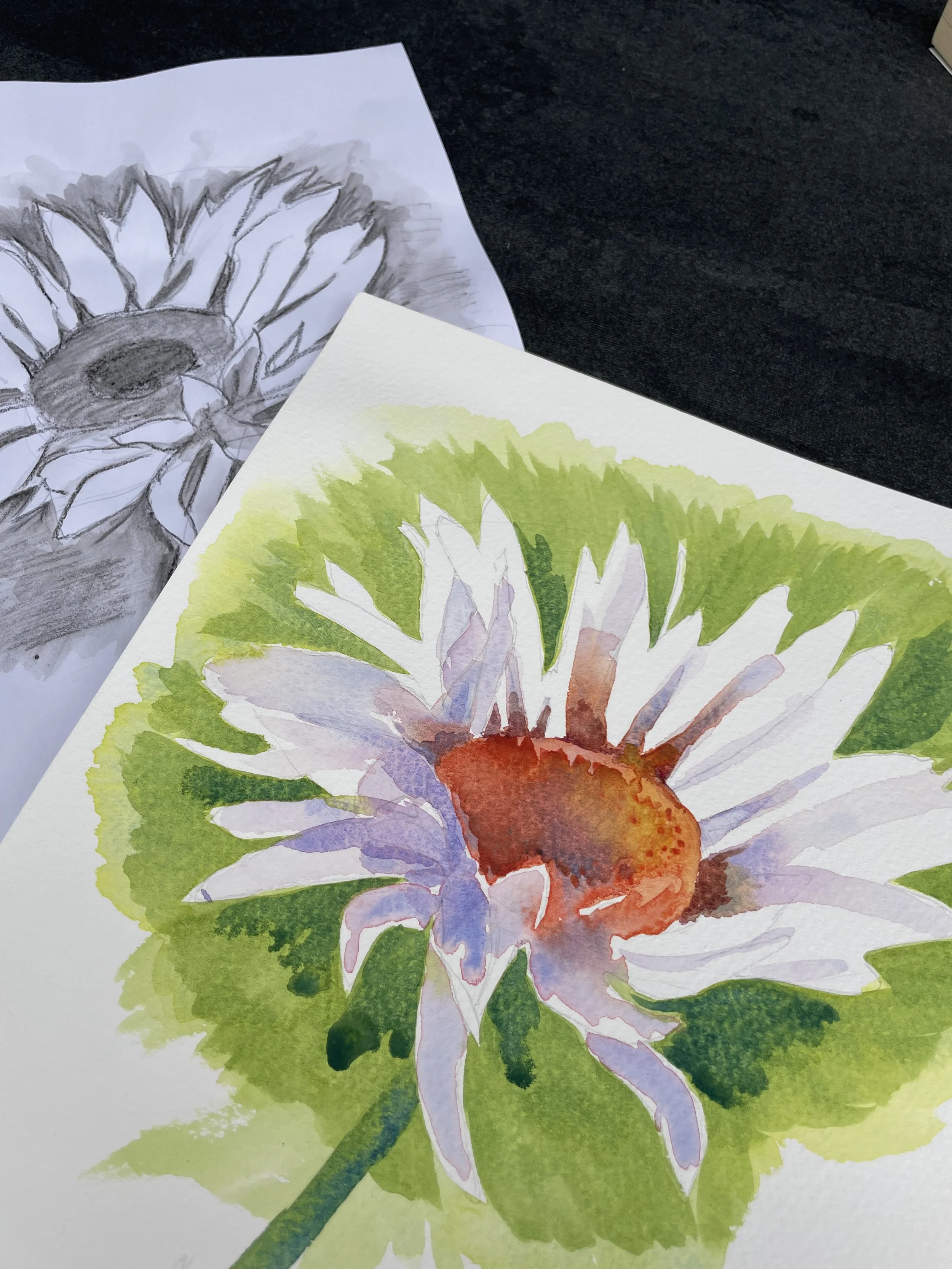“I really enjoy painting and sketching flowers and nature. I’ve done a few watercolour courses in the past but struggle to get motivated to pick up a brush again after long intervals of not doing any painting or drawing, so an online, on demand course was the ideal opportunity to get started again.”